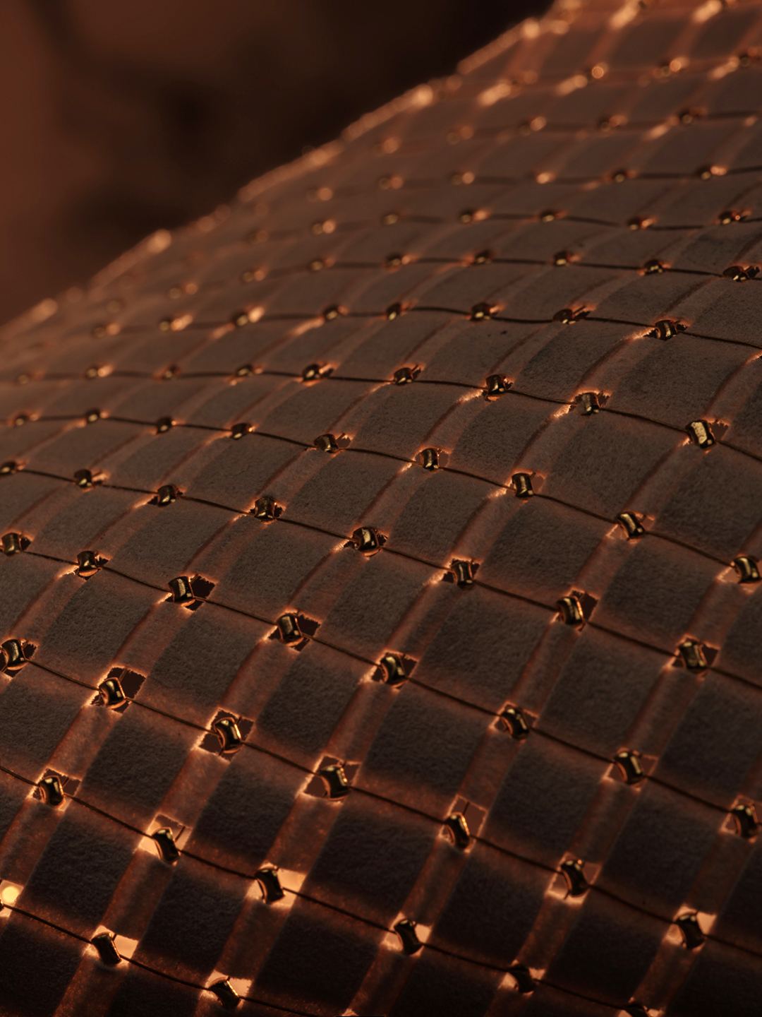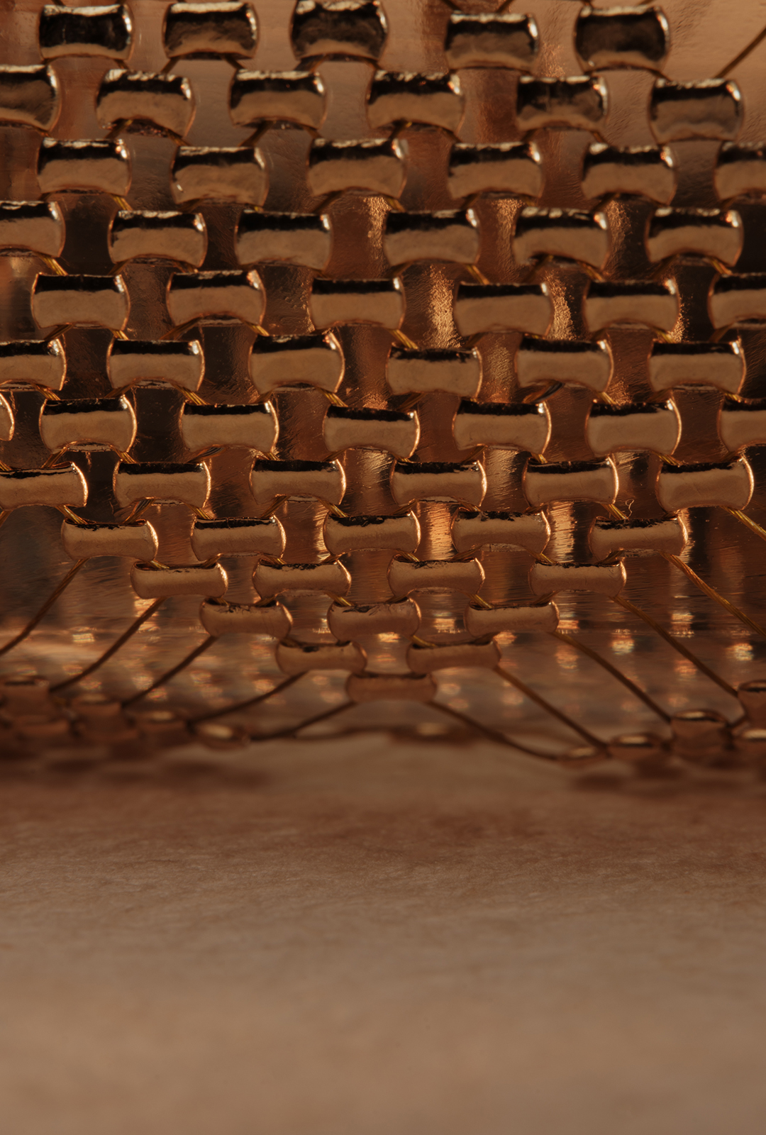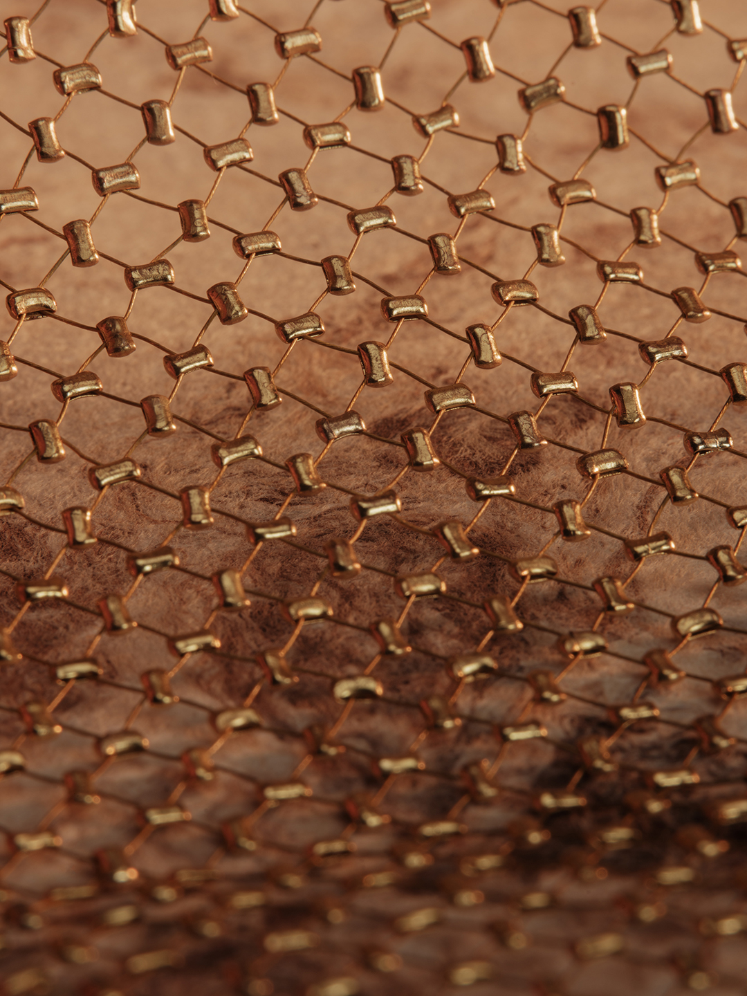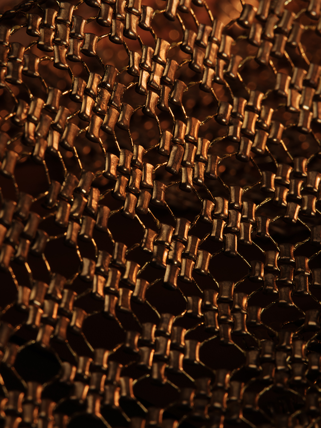 Chaque projet commence par une matière. Le studio développe en permanence de nouveaux échantillons créatifs, afin d’explorer les multiples possibilités offertes par la maille métallique : jeux de transparence, variations de textures, souplesse ou structure …