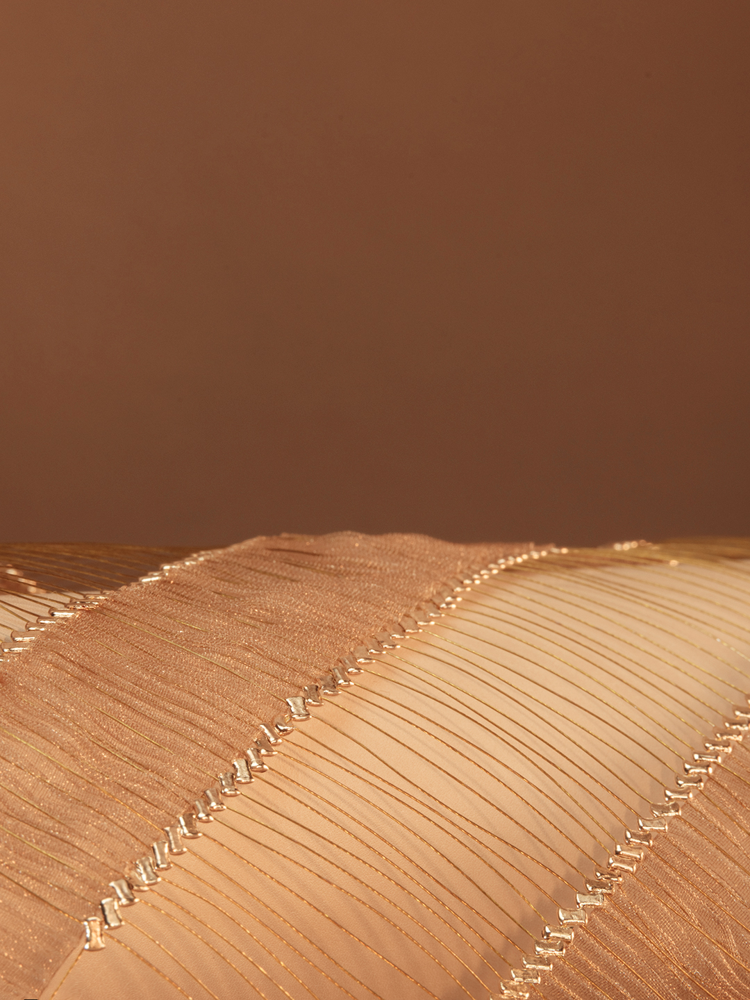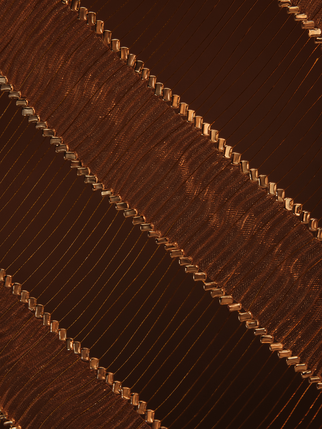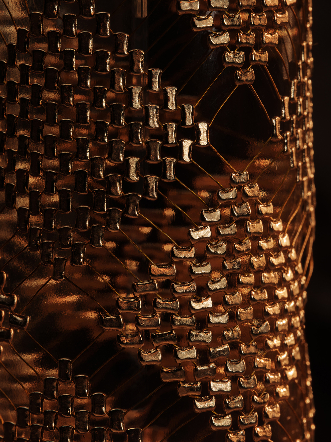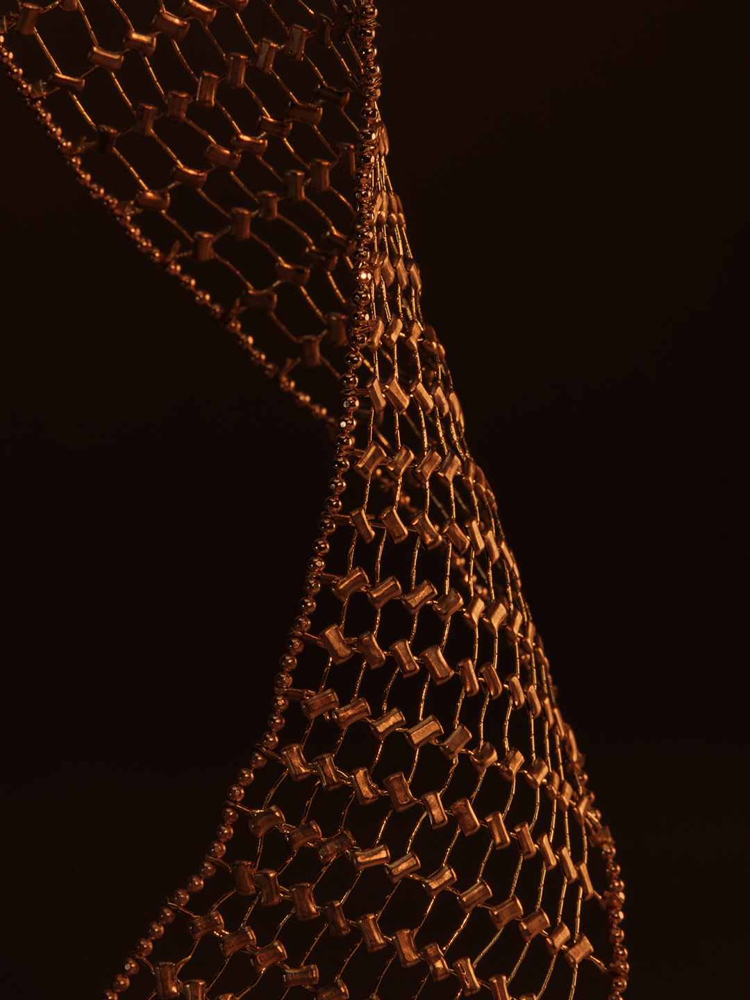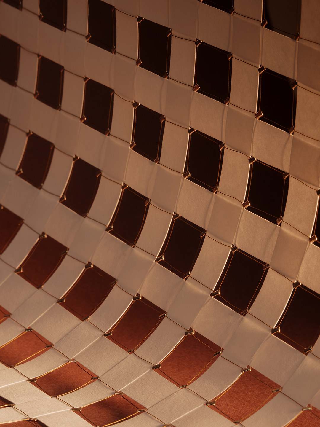 Chaque projet commence par une matière. Le studio développe en permanence de nouveaux échantillons créatifs, afin d’explorer les multiples possibilités offertes par la maille métallique : jeux de transparence, variations de textures, souplesse ou structure …